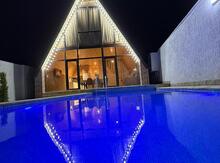 2 mertebe bag evi, 3 yatag otagi, boyuk metbex zal biryerde. Heyetde dincelmey yeri var. her mertebede hamam tualet. Esyali, tam temirli. 800 azn ayliq