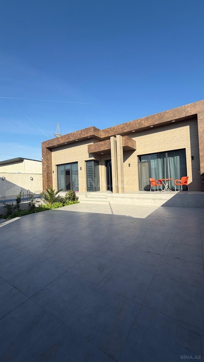 Modern dizaynlı, hovuzlu bağ evi kirayə verilir Ünvan: Qala yolu Mərtəbə sayı: 1 Otaq sayı: 3 Sanitar qovşaq: 2 Mətbəx: tam təchizatlı Ev tam əşyalıdır ❄️ Kondisioner mövcuddur ♂️ Şəxsi hovuz Geniş, səliqəli həyət ☀️ Açıq terras və istirahət zonası Avtomobil saxlamaq üçün geniş yer Sakit və elit mühit Ailəvi istirahət üçün idealdır Şəkillər evə məxsusdur Kirayə: günlük / həftəlik