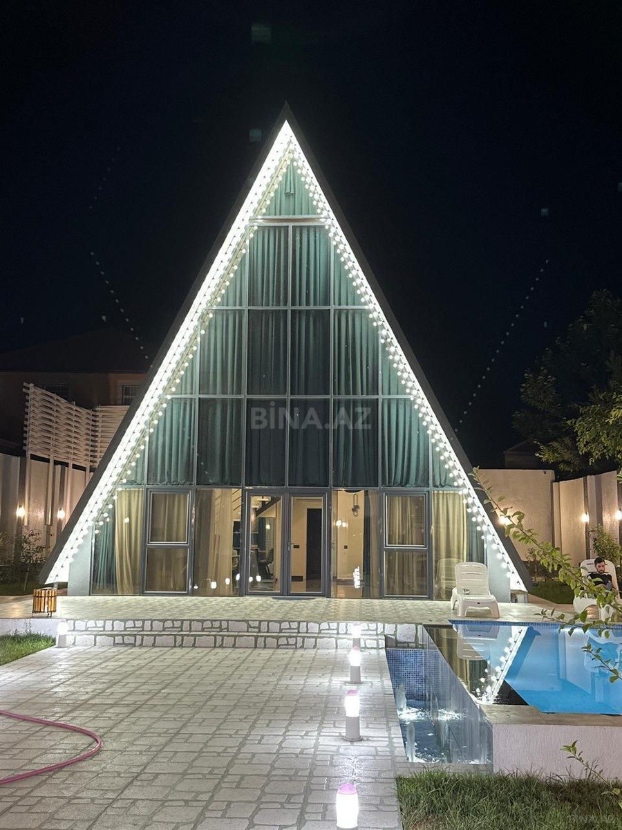 A-frame üslubunda modern bağ evi kirayə verilir Ünvan: Şüvələn Ev tipi: A-frame (şale tipli) Mərtəbə sayı: 2 Otaq sayı: 3 Mətbəx: tam təchizatlı Ev əşyalıdır ♂️ Şəxsi hovuz Axşam işıqlandırması (premium dizayn) Avtomobil saxlamaq üçün yer Sakit və elit mühit Ailə və dostlarla istirahət üçün idealdır Kirayə: günlük / həftəlik