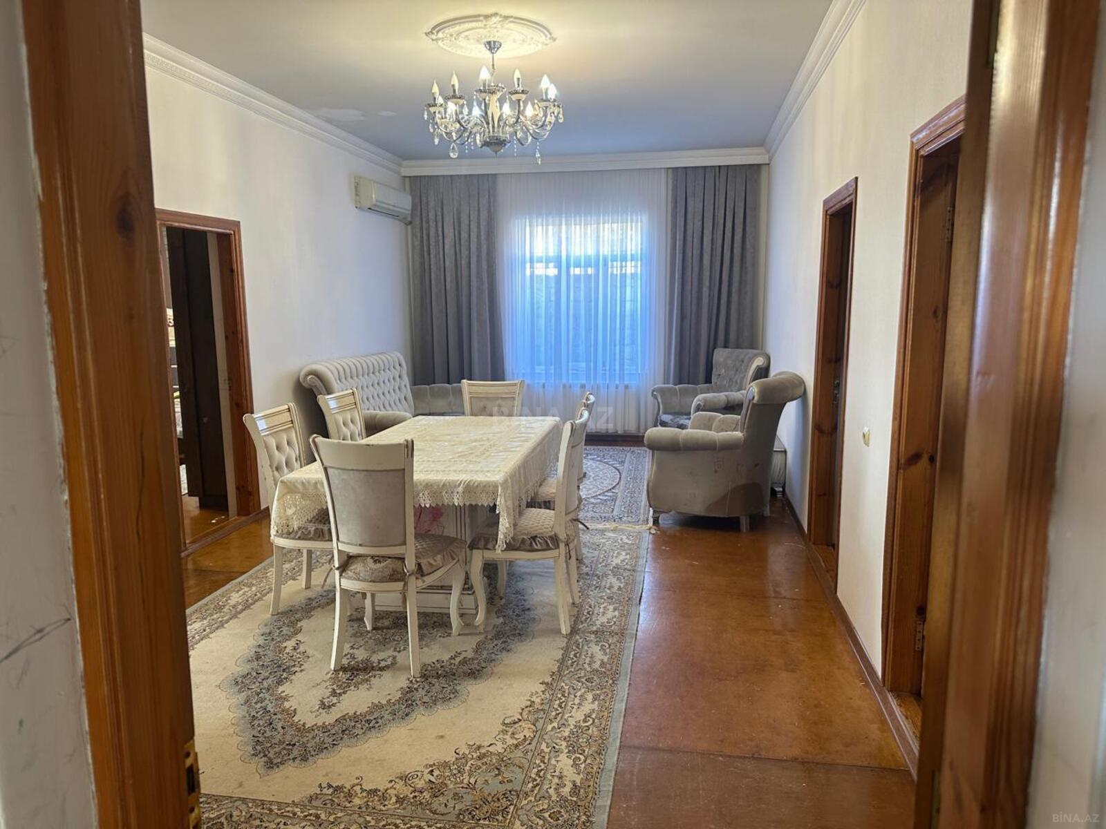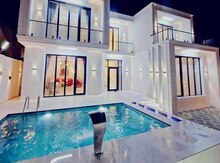Mərdəkan qəsəbəsində 4 yatağ otağı 1 böyük salon əlavə olarağ həyətdə bisetka yay mətbəxi manqal var havuz var filterlidir istilik sistemi kombidir Kandisaner var samavar var smart tv wifi var