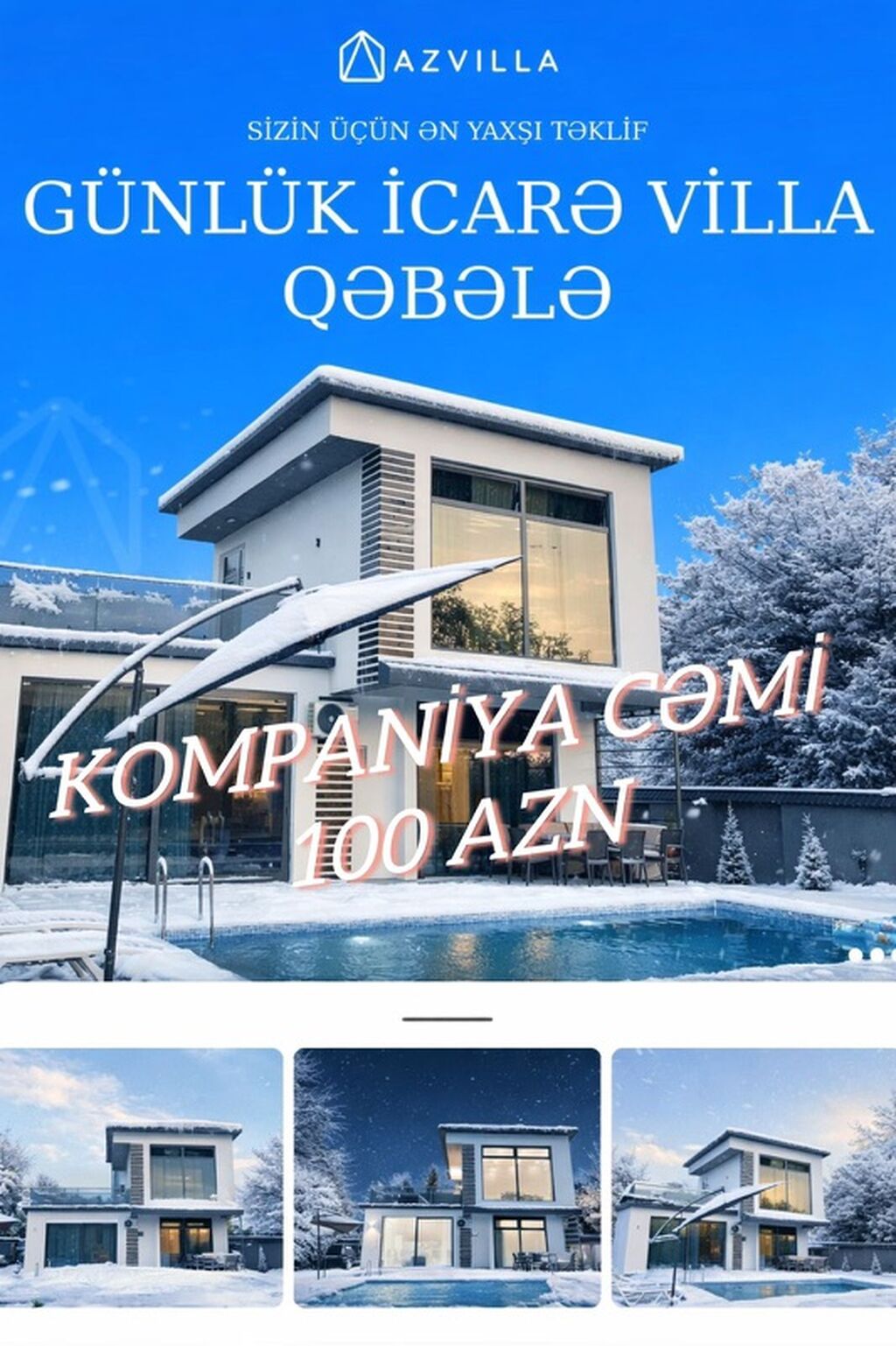 EKSKLUZIV TEKLIF !! İsti Hovuzlu !! Buzovnada vip şəraitdə bağ evi . 3 yataq otağı 1 geniş zaldan ibarətdir . Vifi , smart tv , isdirahətiniz üçün qab - qacaq , manqal , samavar və s ( Terrası var ) .Bağ evi günlük kirayə verilir •Qonşu və səs sıxıntısı yoxdur rahatlıqla dincələ bilərsiniz •Ümumi sahə: 300 kv •3 Geniş yataq otağı • 1 Geniş müasir mətbəx • 1 Geniş Qonaq Otaği • 2 tam təchizatlı sanuzel •Mangalni zona mövcuddur Villamız, komfort və sakitlik axtaranlar üçün ideal seçimdir! 7/24 whatsapp yaza bilərsiniz.