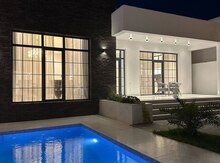 Kirayə bag evi Mərdəkanda. "Makaronnı" yoluna, “Xəzər” marketə 1,5 km-lik məsafədə, TAM SAKİT MƏHƏLLƏDƏ, hər çür şəraiti olan bağ evi icarəyə verilir. 24/7 sürətli Wi-fi, 2 Atv+, daimi işıq, qaz, su, kombi, FİLTİRLİ HOVUZ, 5 yataq otağı, qabyuyan, 2 ədəd soyuducu, KABABXANA, SAMOVAR, əlavə qonaq evi, həyətin və küçənin işıqlandırılması, avtomatik qapılar, minimum 5 MAŞINLIQ PARKOVKA, meyvə ağacları, yaşıl ərazi.