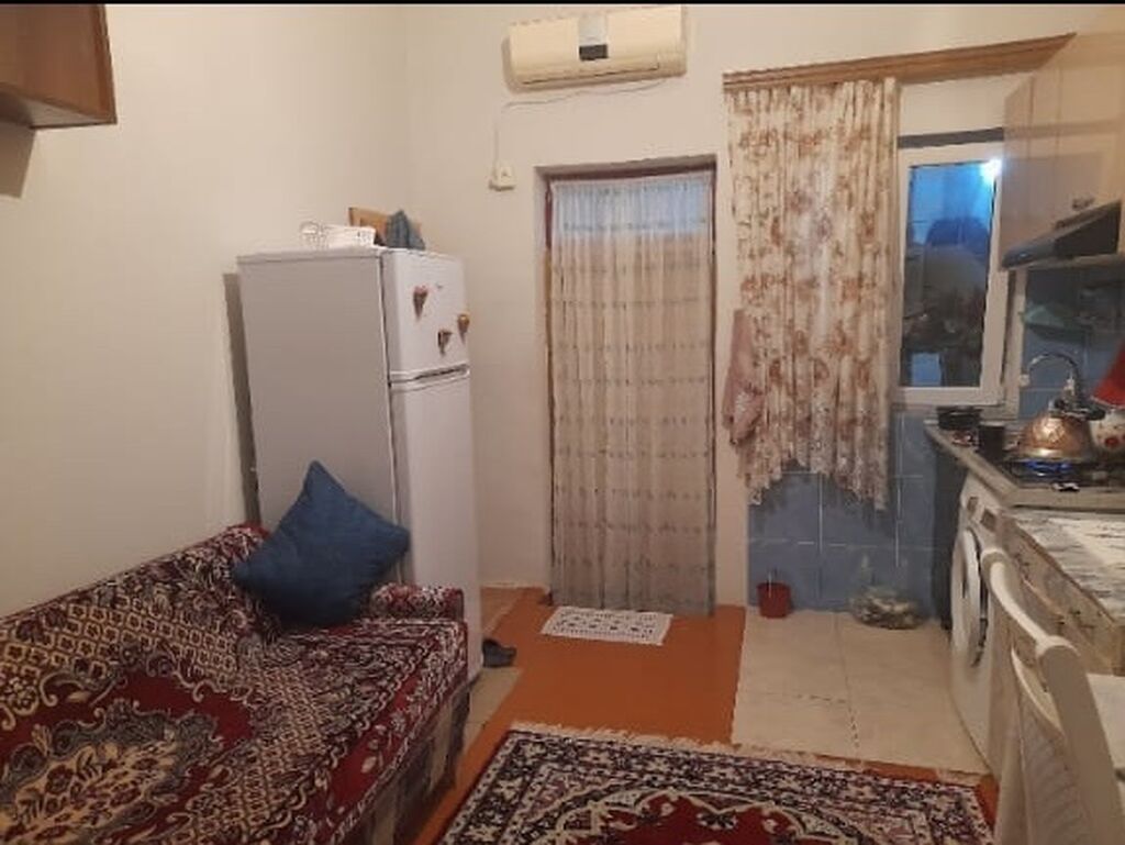 2 otaqlı mənzil – mebel və məişət texnikası ilə Planlaşdırma: - Ayrı yataq otağı: iki tək çarpayı, tumbalar, iri 5 qapılı şkaf və divar güzgüsü. - Mətbəx-studiya tipli otaq: qaz plitəsi və sobalı bişirmə paneli, aspirator, soyuducu, paltaryuyan, mətbəx mebeli və yemək stulu. Otaqda divan və xalça mövcuddur. Rahatlıq və kommunikasiya: - Split kondisioner - Mərkəzi radiatorlu istilik sistemi - Pəncərə və pərdəli işıqlı mətbəx sahəsi - Duş/hamam zonası üçün kafelli hissə (mətbəxlə birgə giriş hissəsində) - Çaydan, məişət qab-qacağı üçün rəflər - Şkaflarda əlavə saxlama bölmələri - Xalçalı döşəmə örtüyü, pəncərə pərdələri Üstünlüklər: - Tam yaşayış üçün zəruri mebel və texnika - Səliqəli plan ...