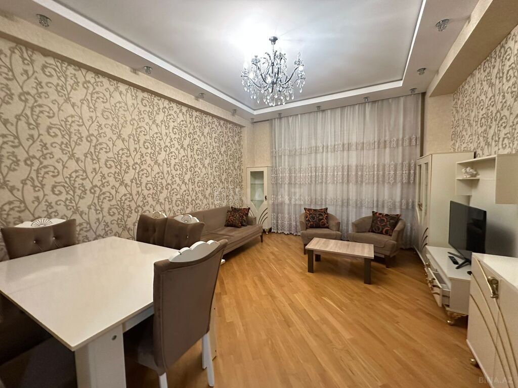 Əla təmirli! Ümumi sahəsi 105 kv.m. Mərtəbə: 7/12. 1 eyvan. Plazma TV. KATV, internet – Wi-Fi. İstilik sistemi “Kombi”, split-kondisionerlər. Mətbəx studiya. Quraşdırılmış mətbəx mebeli və texnikası. 2 s/q (cakuzi, hamam tualet ayrı-ayrılıqda). Mühafizə olunan həyəti, 2 lift, yerüstü və yeraltı avto dayanacaqlar.