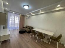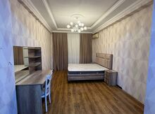 Yataq otağı/- 1 iki nəfərlik yataq dəsti, 1 geyim rəfi, 1 adi rəf, 2 balaca rəf, 1 kondisoner, /-Fooyedə 1 rəf. /-Mətbəx Paltaryuyan, Qabyuyan, çörək sobası, mikro dalğalı soba, soyuducu, kombi, 1 stol, 4 stul, /fooye sanitar qovşaq isti döşəmədir.qonaq otağında və mətbəxdə açıq balkon var.mənzil yelçəkəndir.