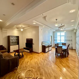 В Сабаильском районе, недалеко от станции метро «28 Мая», в жилом комплексе «Азинко» сдаётся 3-комнатная квартира с отличным ремонтом общей площадью 180 кв.м. — Отопление в квартире — двухконтурный котел. — Роскошная гостиная с совреме ...