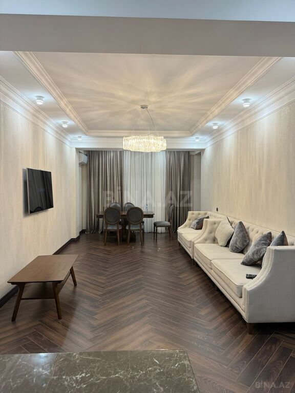 Mərtəbə: 5/17. Ümumi sahəsi 120 kv.m., Parket döşəmə, döşəmə qızıdırıcı, hündür tavan. KATV, internet - Wi-Fi. 1 plazma TV. Quraşdırılmış mətbəx mebeli və texnikası (qabyuyan və paltar yuyan maşın, soyuducu). Istilik sistemi “Kombi”, split-kondisionerlər. 1 açıq eyvan. 2 s/q (duş-kabin). 24 saat mühafizə olunan geniş və gözəl həyəti, uşaq meydanças var. Müşahidə kameraları