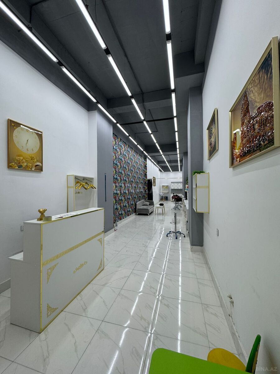 Arendaya verilir – vitrinli obyekt - Ünvan: mərkəzi, piyada axını yüksək olan prospekt/küçə; “Padisah Dessert”, gözəllik salonları və müxtəlif mağazaların yanında. - Giriş: küçədən birbaşa, geniş şüşə vitrin və şüşə qapı. - Fasad: iri reklam yerləşdirməsi üçün uyğun işıqlanmış fasad, parlaq vitrin. - Planlama: iki səviyyəli giriş; yan tərəfdən pilləkənlə yuxarı səviyyəyə çıxış; aşağı səviyyədə açıq ticarət zalı. - İstifadə üçün uyğundur: butik, aksesuar/kosmetika mağazası, şirniyyat/fast food take-away, parfümeriya, telefon aksessuarları, suvenir, xidmət sahələri və s. - İnfrastruktur: insanların toplaşdığı, axşamlar işıqlı və canlanmış meydança; qonşuluqda bir neçə fəaliyyət göstərən obyek ...