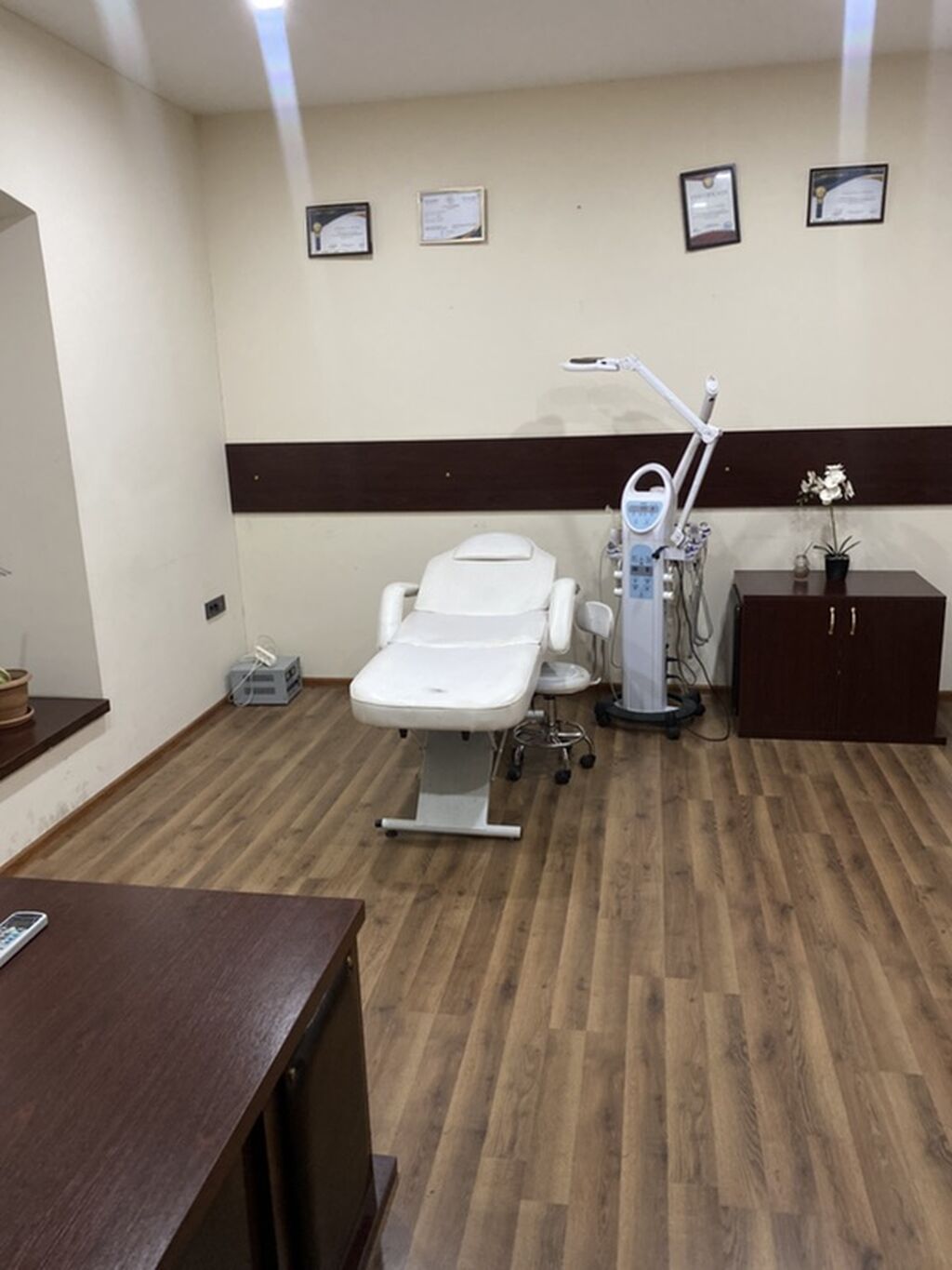 Estetik/Kosmetoloji kabinet icarəyə verilir - Təbii işıqlı, geniş və səliqəli kabinet - Elektrikli kosmetoloji kreslo-masa, tənzimlənən başlıq və ayaqlıq - Mobil işçi stul, geniş iş masası və rahat idarəetmə kreslosu - Dəri baxımı üçün çoxfunksiyalı aparat (buxar/ozon, lupalı işıq, spatula və s. əlavələr) - Böyük güzgü, şkaf və vitrin tipli dolablar, kiçik tumbalar – alət və məhsullar üçün kifayət qədər saxlama yeri - Kondisioner - LED tavan işıqlandırması - Laminat döşəmə, asan təmizlənən səthlər - Divarda asılmış sertifikat çərçivələri üçün yer - Bitki və dekor elementləri ilə rahat mühit Prosedur növləri üçün uyğundur: üz və dəri baxımı, aparat kosmetologiyası, həmçinin konsultasiya və ...