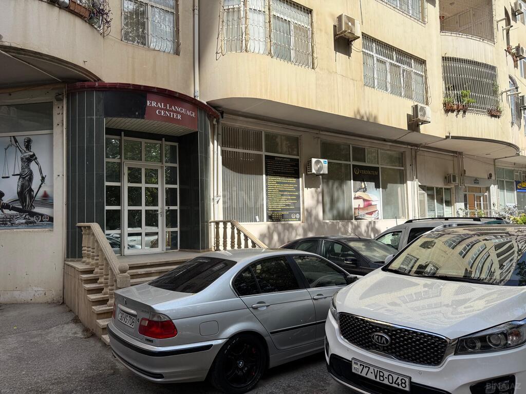 9 mərtəbənin 1-ci mərtəbəsində küçəyə ayrica girişi,10 otaq 1 mətbəx, 3 sanuzel, iclas otağı, namaz otağı. Bütün otaqlarda kondisioner,İstilik sistemi ,isti soyuq su daimi,parkovkası var.Elave melumat ucun elaqe saxlayin.