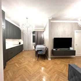 Mənzil dizayner layihəsi əsasında, yüksək keyfiyyətli materiallardan istifadə olunaraq təmir edilib. Döşəmə isti pol sistemi ilə təchiz olunub.
