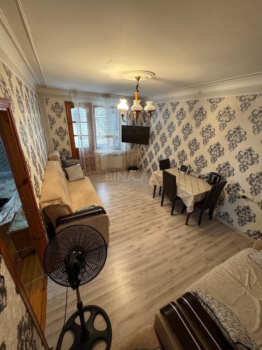 Təcili İnşaatçılar metrosundan 5-10 dəqiqəlik məsafədə 2 otaqlı köhnə tikili (Xruşovka) mənzil satılır. 5 mərtəbə, orta blok. Mənzil səliqəli orta təmirlidir.Seyf qapısı, təmirli mərtəbə. Mənzil bütün zəruri əşyalarla təmin olunub: qonaq otağı mebeli (Versace brendi, Türkiyə istehsalı), yataq otağı mebeli, Televizor (Smart TV Samsung) kombi (E.C.A.), Ariston, soyuducu (SHARP), paltaryuyan maşın (Samsung), kondisioner (Galanz).
