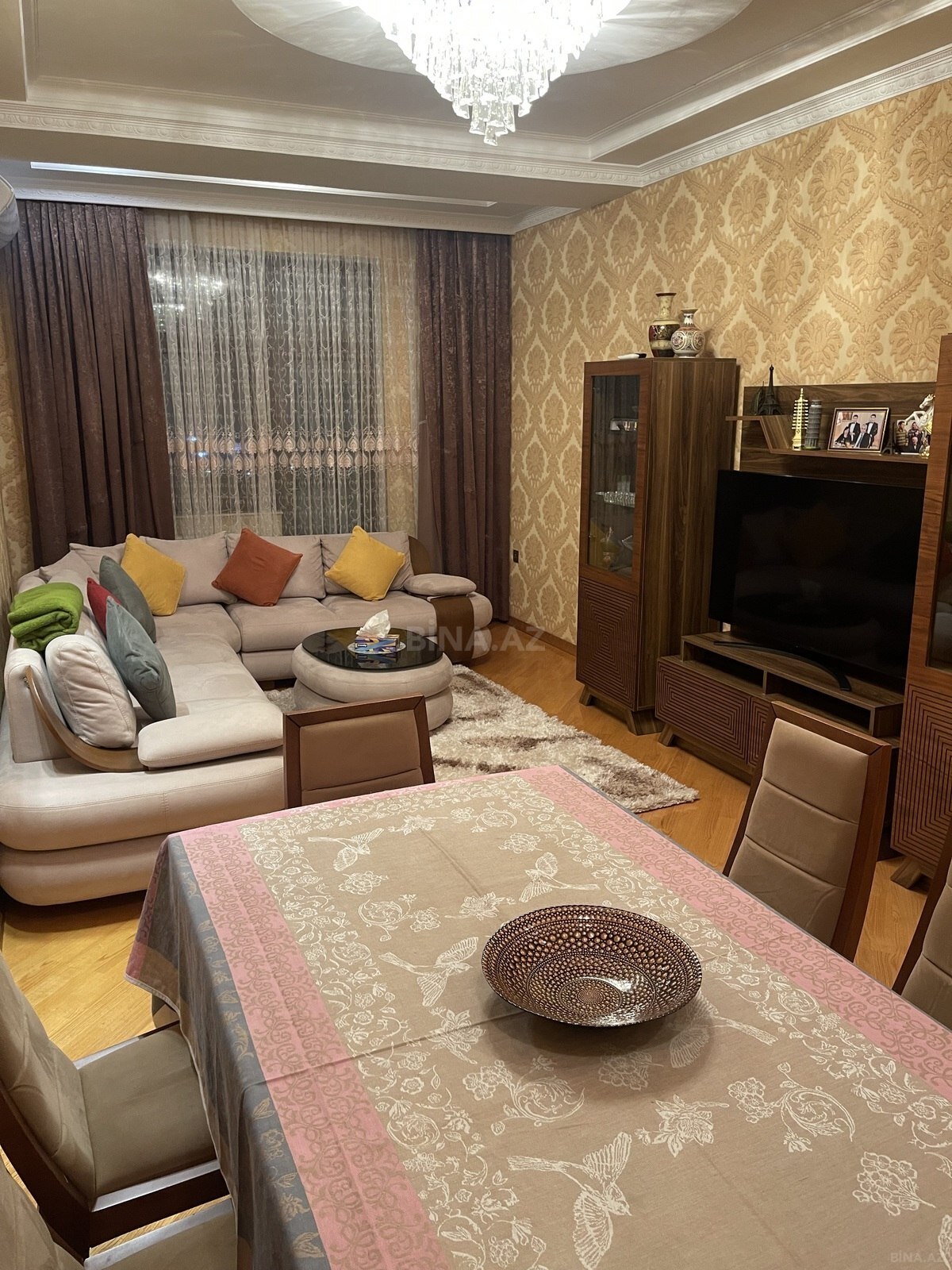 IceriSeher m/s yaxinligi, Nerimanov heykelinin yani, klassik stalinka layiheli, cardagli binada umumi sahesi 75 kv m olan 3 otaqli menzil satilir. Mertebe 5/5, das bina, orta blok, kodlu – temiz bloku, orta temir, doseme parket, tavanin hundurluyu 3.40 metr, yelcekendir, 2 eyvani, qaz, su, isiq daimidir, sehere gozel menzere. Butun senedler qaydasindadir CIXARIS var. Yaxinliqda usaq baxcasi, mekteb, dayanacaq, market ve diger iase xidmeti obyektleri yerlesir.