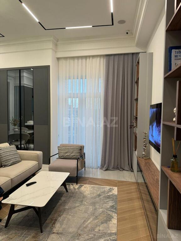 Mənzilin hər detalı zövqlə və keyfiyyətli materiallardan istifadə edilərək dizayn olunub. Geniş və işıqlı otaqlar, müasir mətbəx mebeli, yüksək səviyyəli santexnika və zərif işıqlandırma sistemi ilə seçilir.