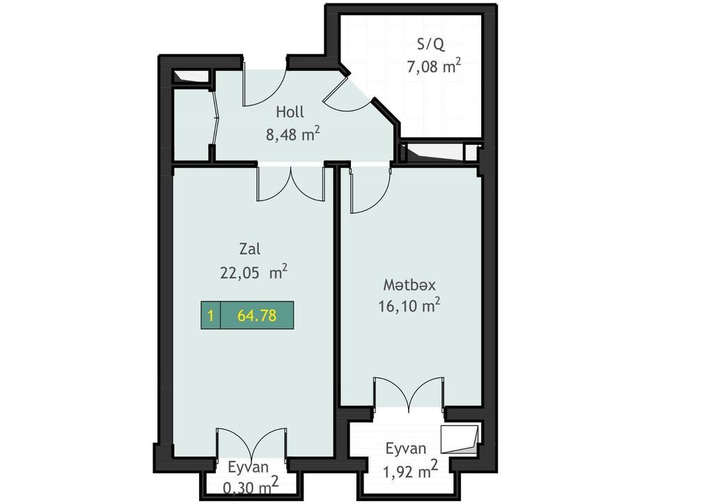 Sahə: 65 m²