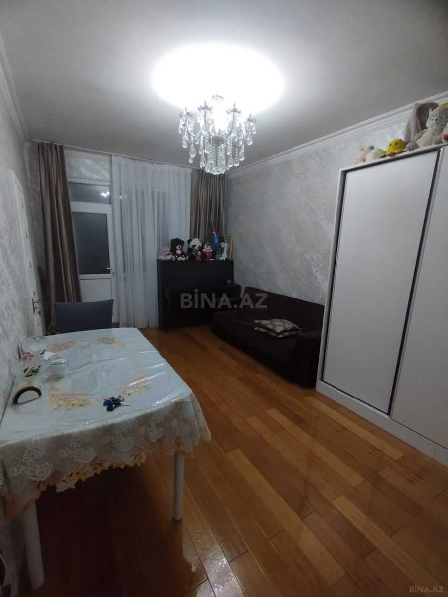 Mənzil yeni tikili 10 mərtəbəli daş binanın 9-cu mərtəbəsində yerləşir. Binanın bütün mərtəbələri daşdır. Geniş həyəti var. Həyətdə mühavizə və kamera sistemi mövcuddur. Həyətə sakinlər üçün şlaqbaum qoyulub. Bina və həyət hər gün təmizlənir. Binanın qazı, suyu, işığı daimidir.