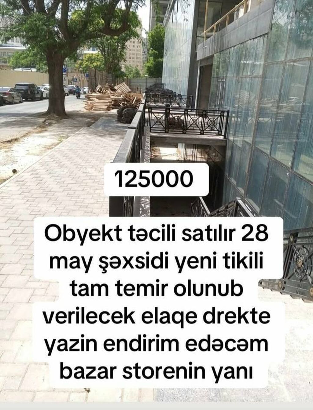 Təcili satılan obyekt – 28 Mayda, Bazar Store-un yanında. Yeni tikili, tam təmir olunub. Qiymət: 125000. Əlaqə üçün yazın, endirim ediləcək.