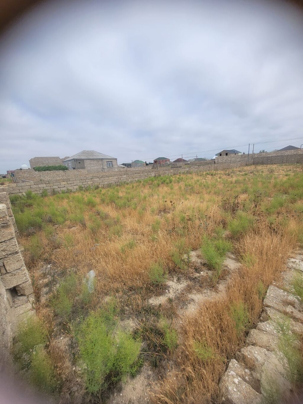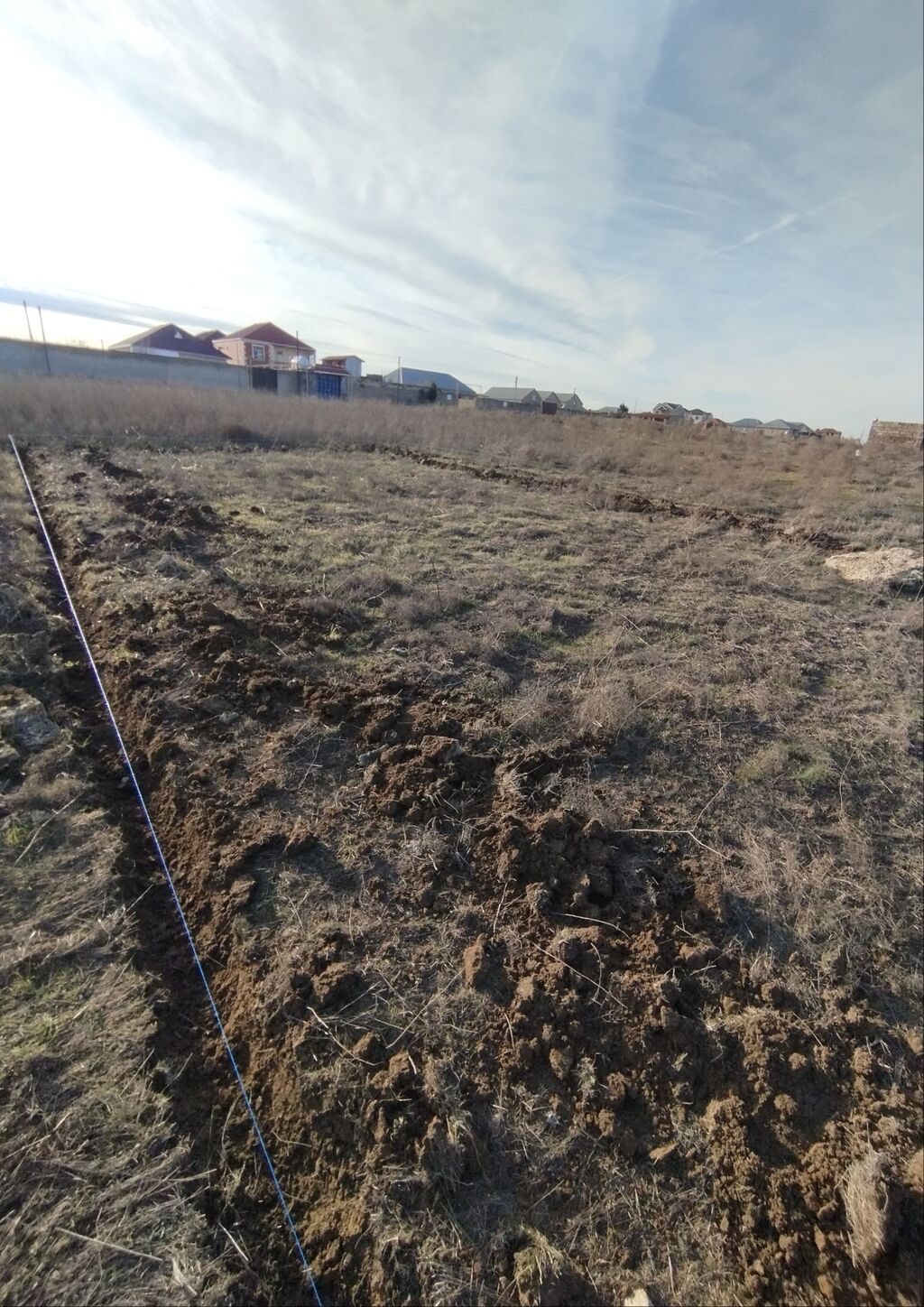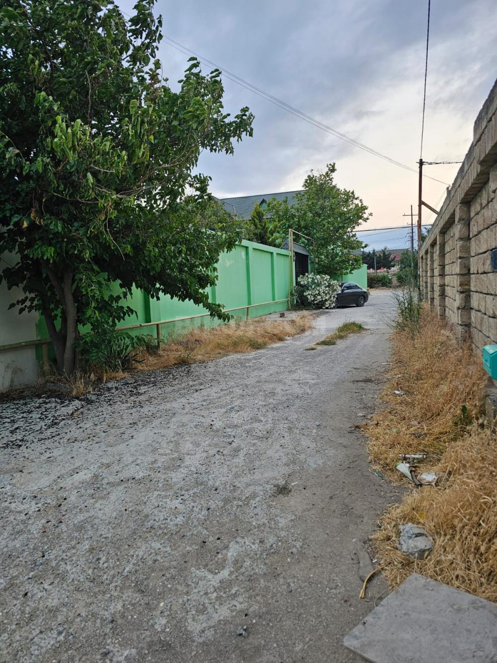 Torpaq sahəsi – hasarlı, kommunikasiya xətləri yaxınlıqda - Geniş həyət sahəsi, düz relyef - Beton-la örtülü su anbarı/qapalı quyu (şəkildə) - Küncləri iynəyarpaqlı ağaclarla əkilmiş, perimetri daş hasarla çevrələnmiş - Həyətdə yeni əkilmiş meyvə ağacları - Elektrik xətti küçənin kənarından keçir, dirəklər çəkilib - Geniş açıq məkan, istirahət guşəsi yaratmaq üçün əlverişli - Kənd təsərrüfatı və bağçılıq üçün uyğun - Sakit ərazi, açıq mənzərə, qonşuluqda bağ sahələri Qeyd: Şəkillər qarlı mövsümdə çəkilib; sahənin planlaşdırılması və ya əlavə abadlıq işləri üçün çoxlu boş yer mövcuddur.