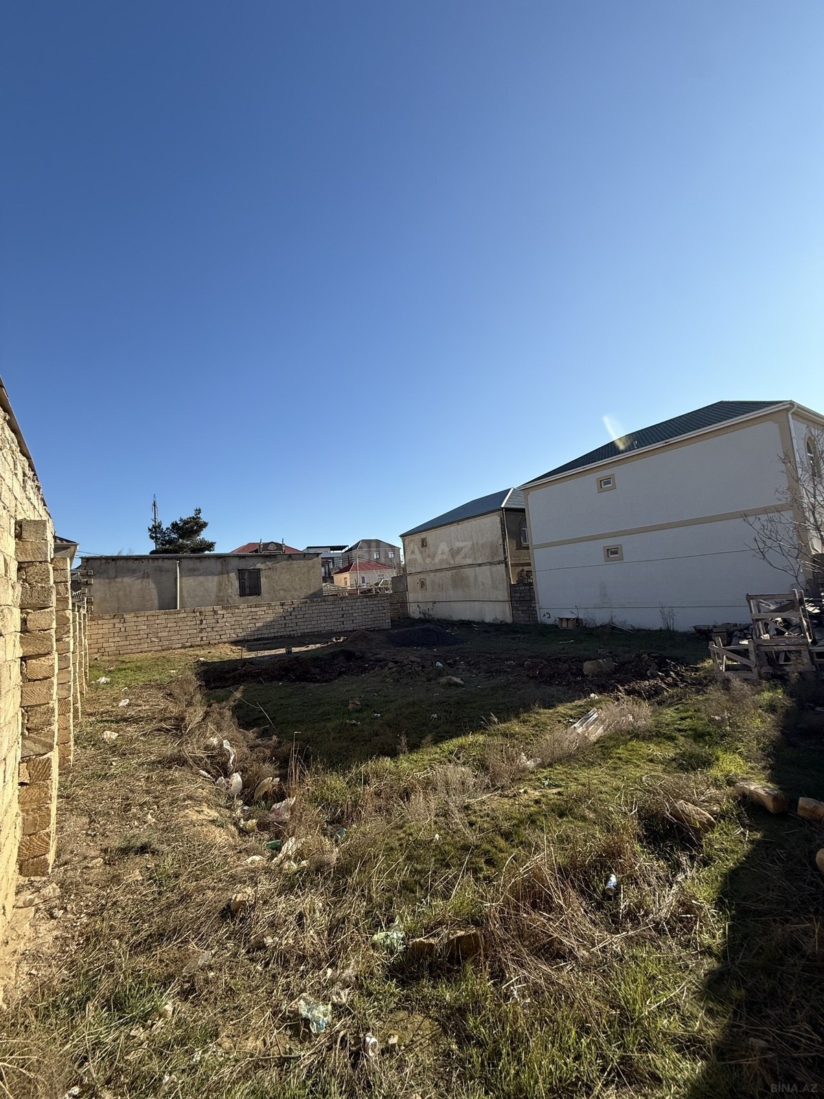 Torpaq sahəsi – daş hasarla əhatələnmiş, darvazalı - Təyinat: fərdi yaşayış evi tikintisi üçün əlverişli boş sahə - Perimetr boyu qara daşdan hörülmüş hasar mövcuddur - Geniş metal darvaza quraşdırılıb, giriş hazırdır - İçərisi təmiz, düz relyefli, tikinti üçün əlçatan - Ətrafda fərdi yaşayış evləri, məhəllə infrastrukturu formalaşıb - Küçə işıq dirəkləri yaxınlıqda - Kvadrat şəkilli yerləşim, planlama üçün rahat Şəxsi ev, bağ evi və ya yardımçı tikililər üçün uyğun torpaq sahəsi.