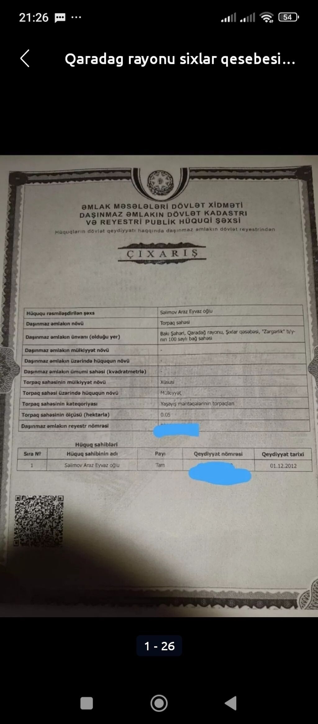 Şüvelanda cox prestijli bir yerde, Şüvelan-Qala yolunda, Qaladan Şüvelana gelende sagda, merkezi magistral yoldan texminen 250-300 m, yoldan 1-ci heyetde,27 sot torpaq sahesi satilir. Torpaq sahesi hasara alinib,qapisi qoyulub,yolu asfaltlidir. Etrafi yasayis evleri ve villalardir. Torpaq sahesi rahatliqla bolguye gedir. Sakit,rahat,prestijli bir mehelledir.Qazi,isiqi,icmeli suyu,telefon-internet xetti daimidir.Senedleri tam qaydasindadir [kupca 24 sota ].
