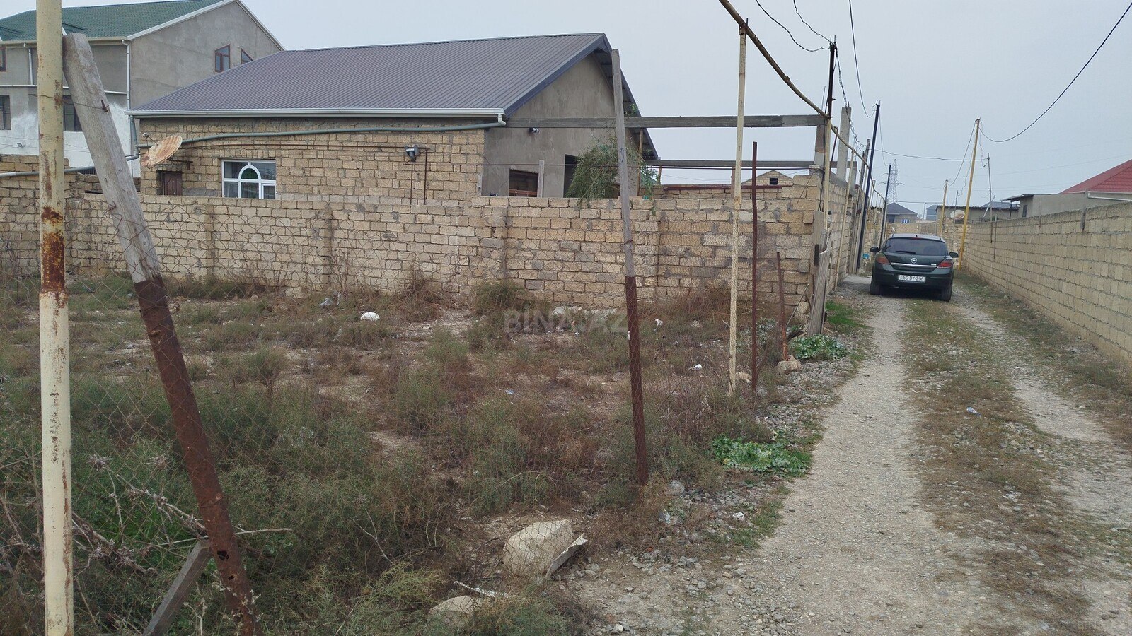 Nardaran Lehic baqlari İnsaf markete yaxın nTorpaq sahəsi və yarımçıq tikili - Hündür daş hasarla əhatələnmiş fərdi yaşayış üçün torpaq sahəsi - Sahənin daxilində fundamenti və aşağı səviyyə divarları hörülmüş yarımçıq tikili - Planlama: bir neçə otaq və dəhlizlər üçün bölmələr çəkilib, tikilinin konturları aydın görünür - Giriş: dar, daş hasarlı məhəllə keçidi ilə metal darvazaya çıxış - Sahə otlaqla örtülüdür, relyef demək olar bərabərdir - Qonşuluqda fərdi evlər, sakit yaşayış massividir - Hasar boyu daş materialdan bərkimələr mövcuddur; tikinti işlərini davam etdirmək üçün uyğun baza - Kommunikasiya xəttləri üçün yaxınlıqda dirəklər və kabel çəkilişi görünür Fərdi ev layihəsini sürətlə ...