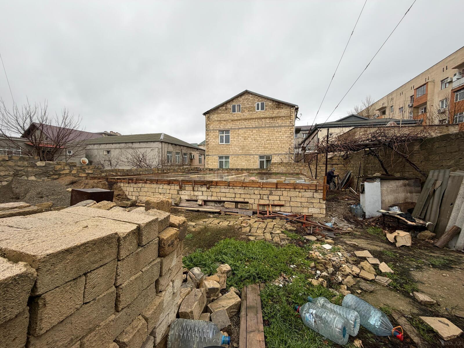 bag evi tikilib shiferi qalib 12 m eni 13 m uzunu hayatda quyusu var su,ishiq,qaz var meyve agaclari var hasari var cox temiz havasi var sakit yerdadi uki mertebe uc de mansard tikilib.